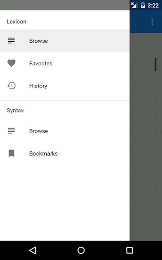 Greek Reference: Ancient Greek Lexicon & Syntax is an open source tool for students of ancient Greek. It contains a full, searchable copy of Liddell and Scott's Intermediate Greek-English Lexicon, as well as the text of Jeffrey A. Rydberg-Cox's Overview of Greek Syntax.