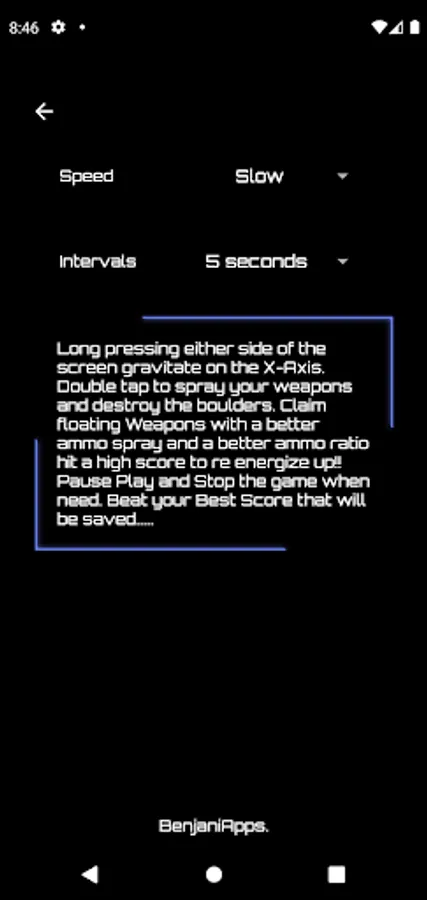 Avoid the flying rocks, gravitate left and right by long pressing the screen double tap to shoot!!! Beat your high score.
