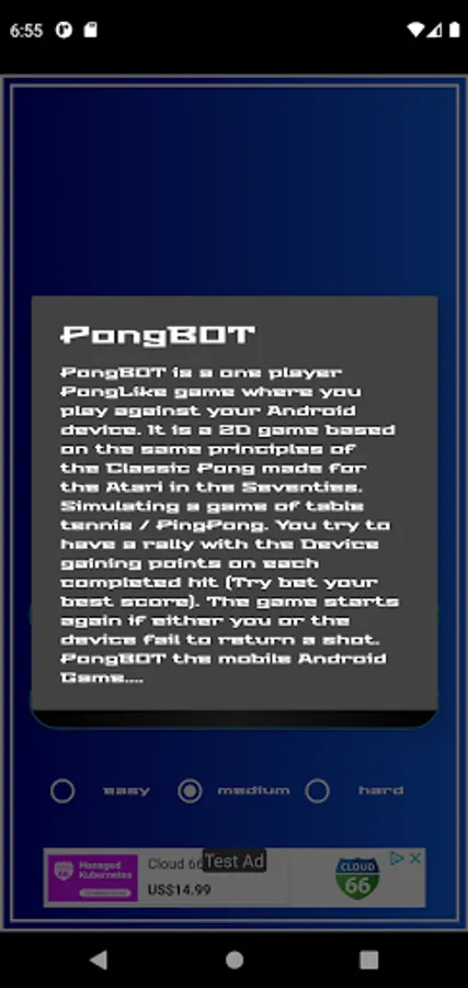 PongBOT is a one player PongLike game where you play against your Android device.