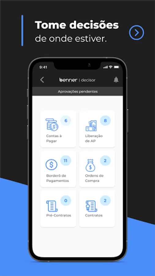 Decisor is an application integrated with Benner's ERP, which allows the analysis of the company's management information in a simple and fast way. The application integrates all document approvals, making management more agile and dynamic.