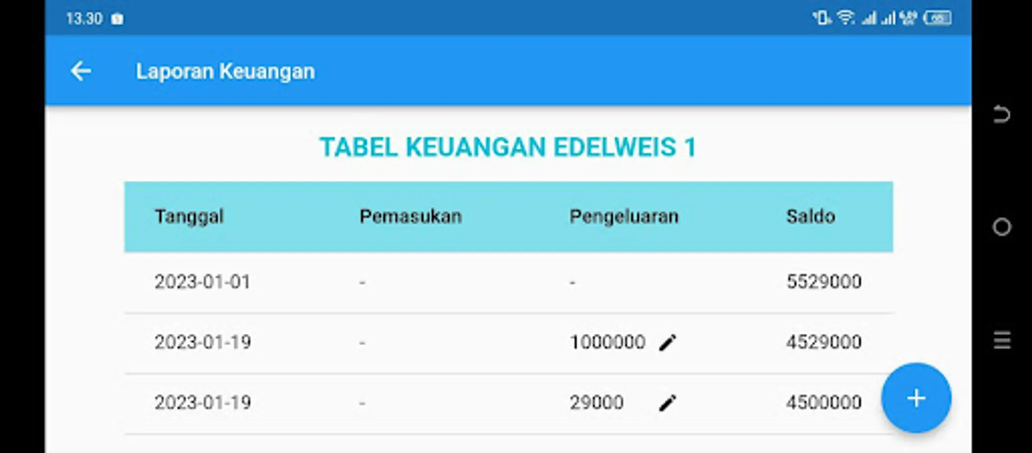 Aplikasi ini untuk memonitoring cash bank keuangan warga.