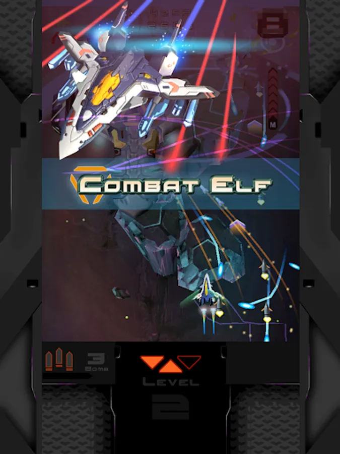 In 2201, the Dark Planet to confuse the Space Air-Force. Make they lost and attack each other. Your mission is to fight back the enemies rushing towards you, get the fighter(Combat Elf) for some non-stop fighting and save the space!