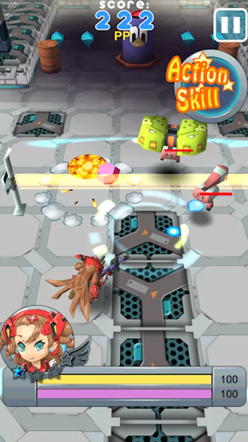 Kary is the princess of robot planet. One day, evil robot Dark-V to invade the robot planet. Your mission is to fight back the enemies rushing towards you, get the fighter for some non-stop fighting and save the planet!