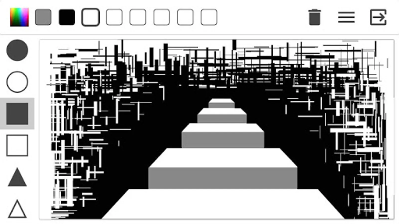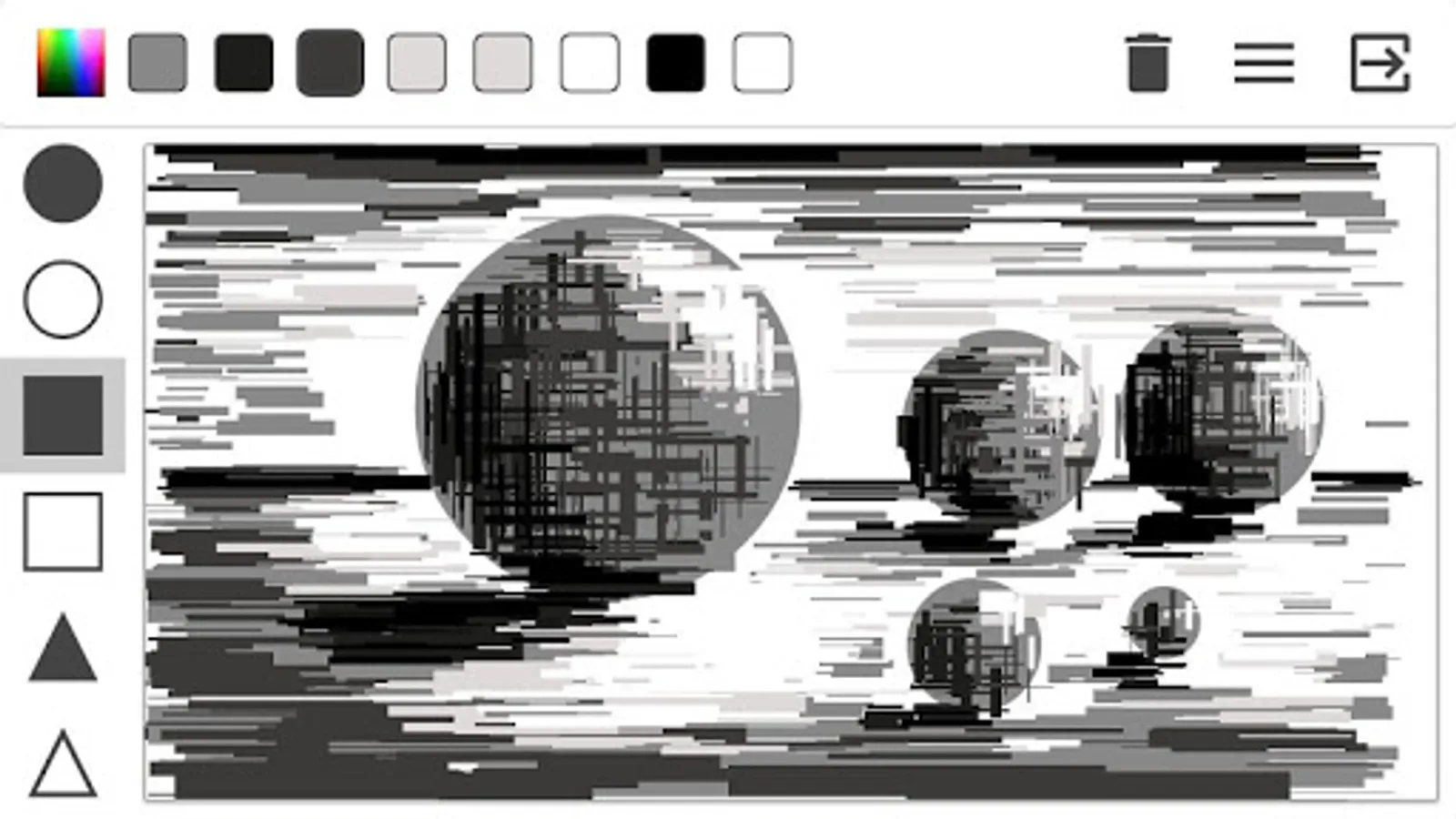 PaintShapes is different from the other painting apps because you are not allowed to draw free lines. Everything you paint must be done through geometric shapes and how they interact with each other. Have fun and get challenged to paint interesting stuff with a limited set of tools.