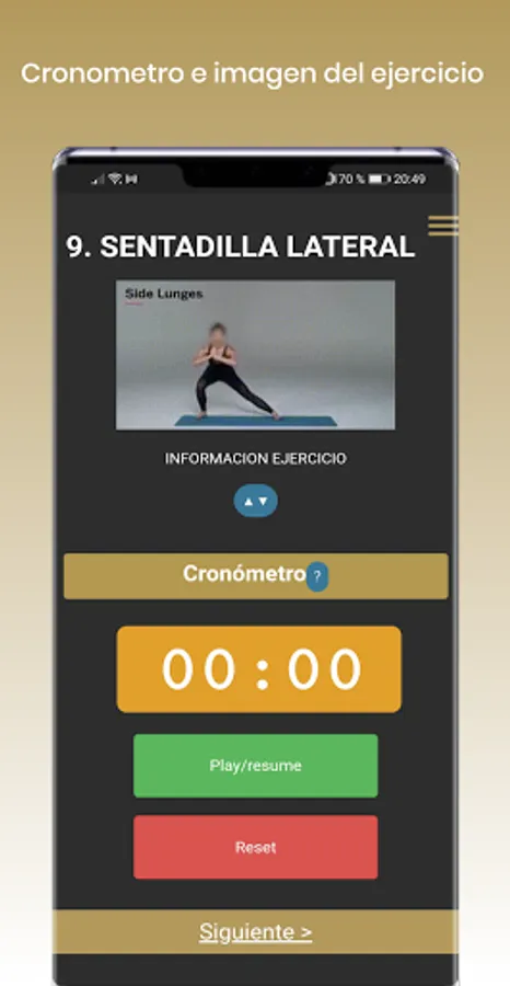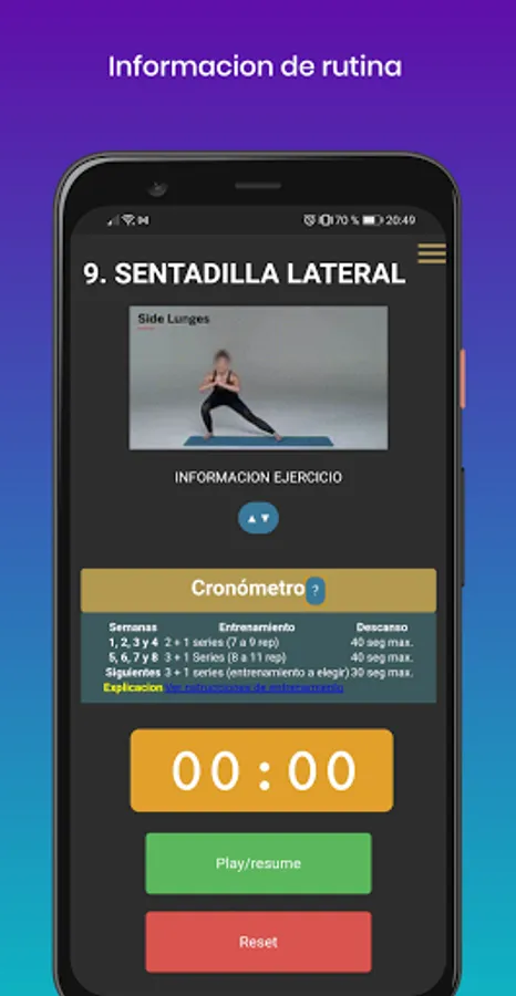 - Information on each exercise of the routine.