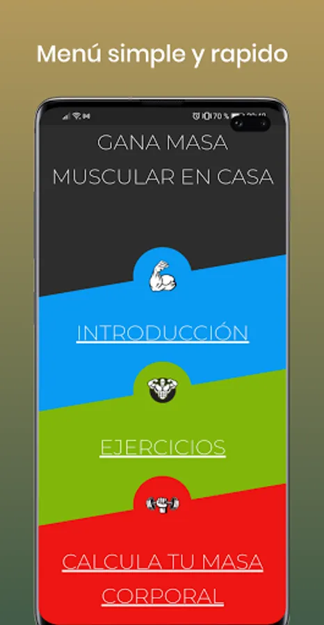 Don't waste time and gain muscle mass training from home with an easy and simple app.