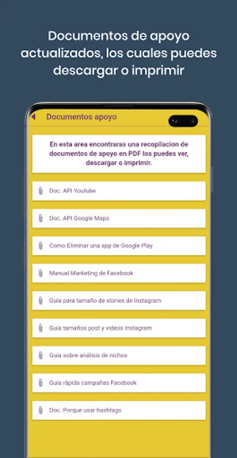 We created this App so that you can take your classes, support videos, documents, you can ask questions and all this from your mobile device.