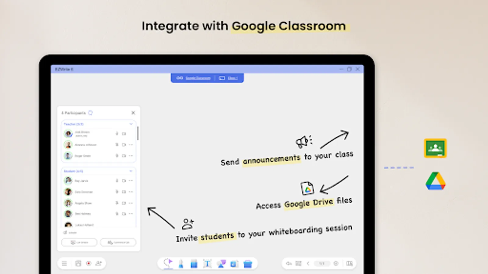Enable cloud whiteboarding and use it with EZWrite on the BenQ Board to join classes or meetings, allowing you to engage and share your ideas without having to leave your seat.