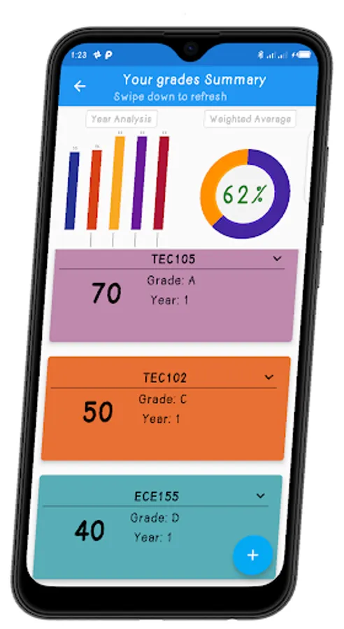 For students,you will be able to add your marks per subject and per year where your grades will be analysed per year and a weighted average generated.