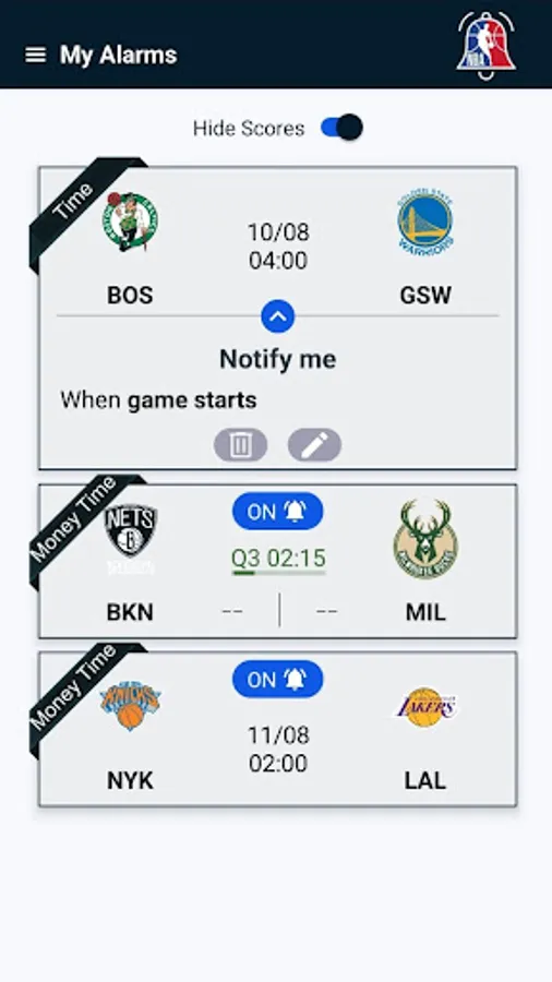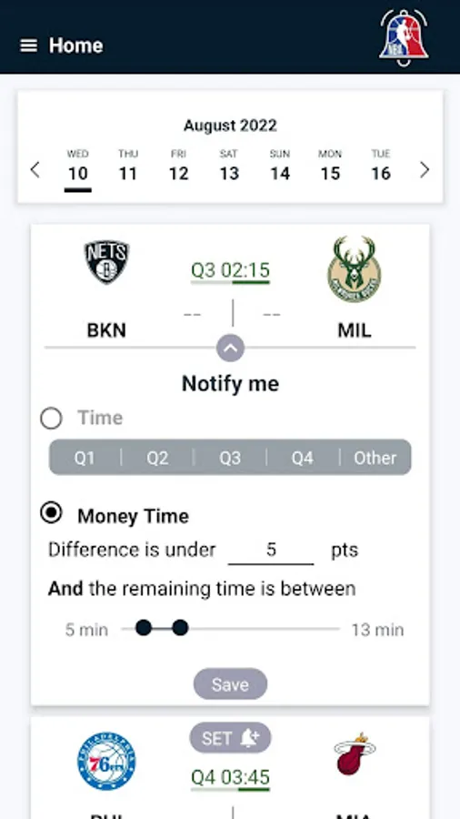 The app notify users when it's the money time in the games they are interested in.