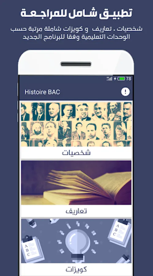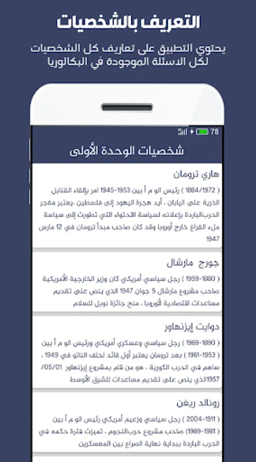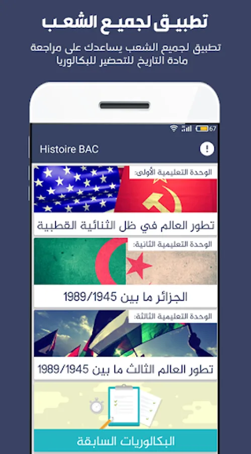 Comprehensive application in the history of all people of good review in the third year baccalaureate secondary, the application combines all of the definitions, concepts, terminology and special characters teaching units according to the three new program