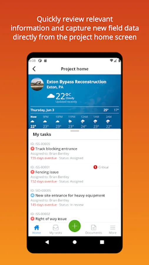 SYNCHRO Field is the solution to managing projects from the construction site. By capturing accurate, real-time data with highly efficient geo-located map and weather services, the entire team will gain insight and communicate effectively to drive field productivity.