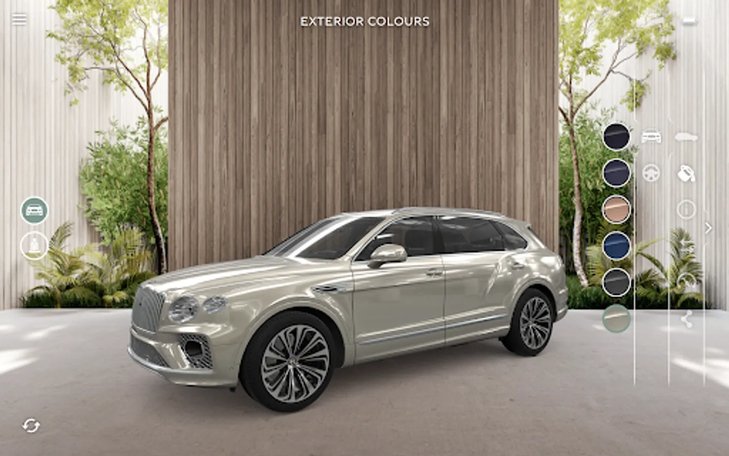 We attempt to keep all information on the Bentley AR Visualiser app up-to-date. The product specifications contained within the AR Visualiser, however, are for information purposes only. As we continually enhance our products, alterations in our models or standard or optional equipment may occur. We reserve the right to change these product specifications at any time without notice. For accurate up-to-date information, please contact your nearest or preferred Bentley Motors dealer.