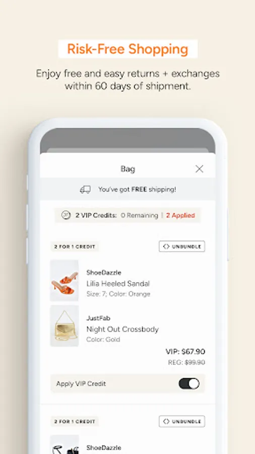 As a VIP member with the free JustFab mobile fashion app, you can enjoy a faster, easier shopping experience with early access to exclusive fashion deals and sales. Your personalized boutique filled with new shoes, boots, dresses, denim, bags and more is just a tap away. Be the first to know about new arrivals, collections, and exclusive collaborations.