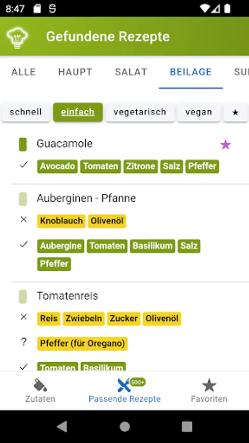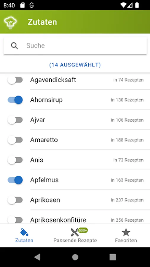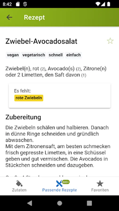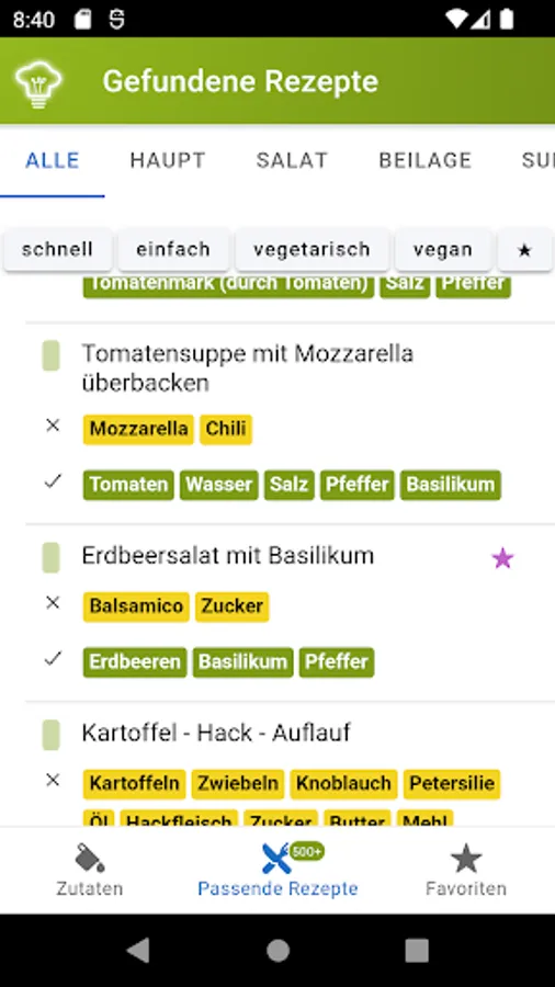 Find suitable recipes for the ingredients available in the house. Avoid waste and use food sustainably. Before any food goes bad or ingredients expire, let the app inspire you with new recipes. The recipe finder acts as an offline reference book for over 30000 recipes. The great feature of the recipe finder is that you select existing ingredients and suitable recipes are suggested.