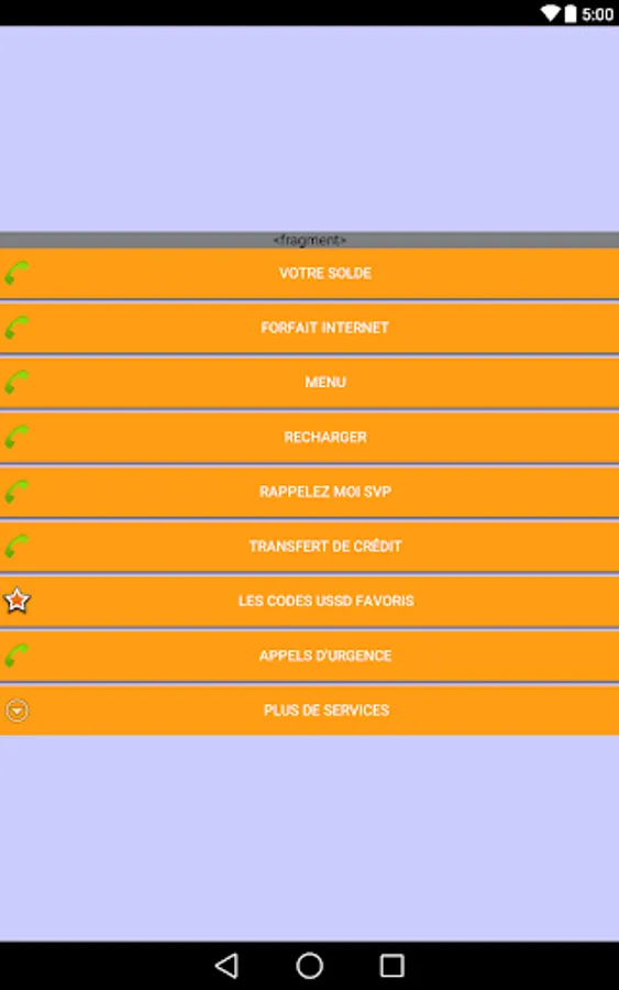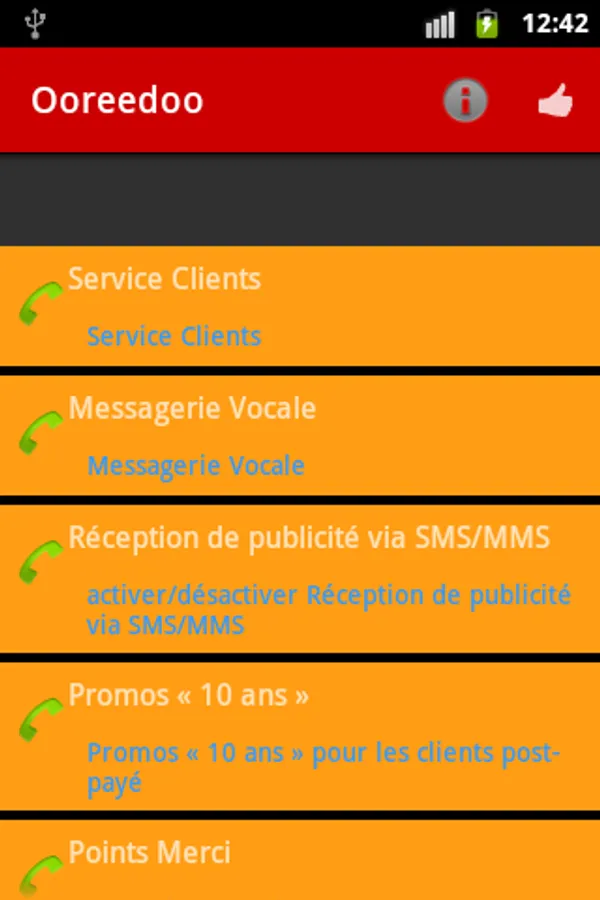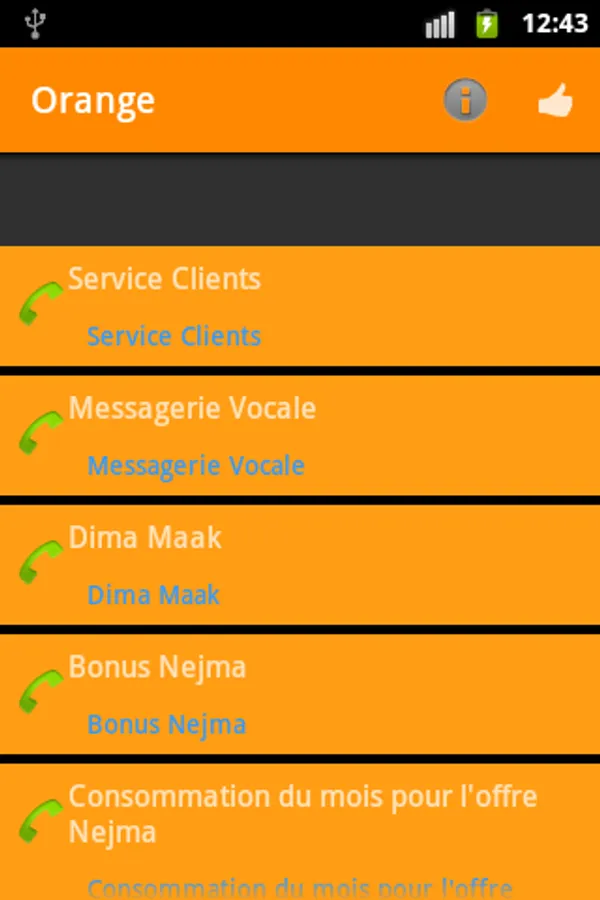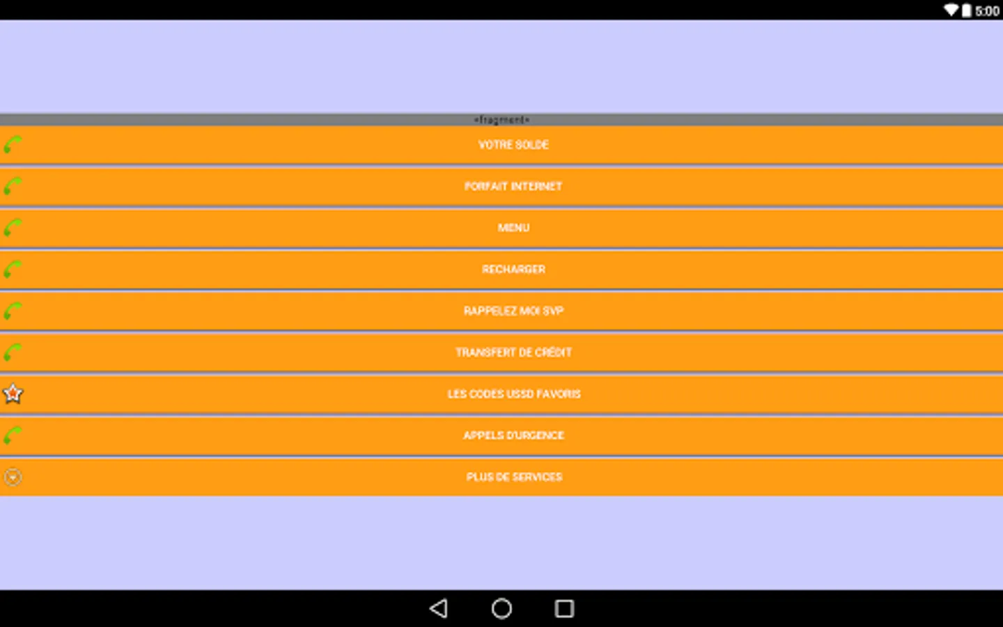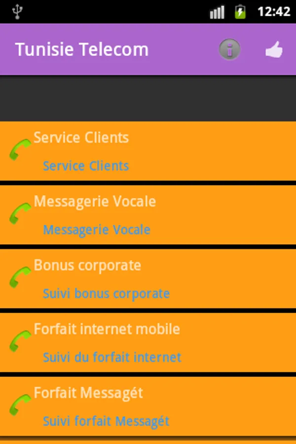 USSD SERVICES is an application that provides easy access to the most recurring services (USSD your balance, recharge, Otlibni, transfer credit ...) in mobile operators in Tunisia (Ooredoo, Tunisie Telecom and Orange). You are no longer required to learn by heart all the USSD code (* 120 # .....), you just have to launch the application and select the desired service.