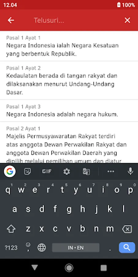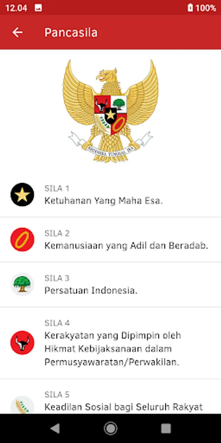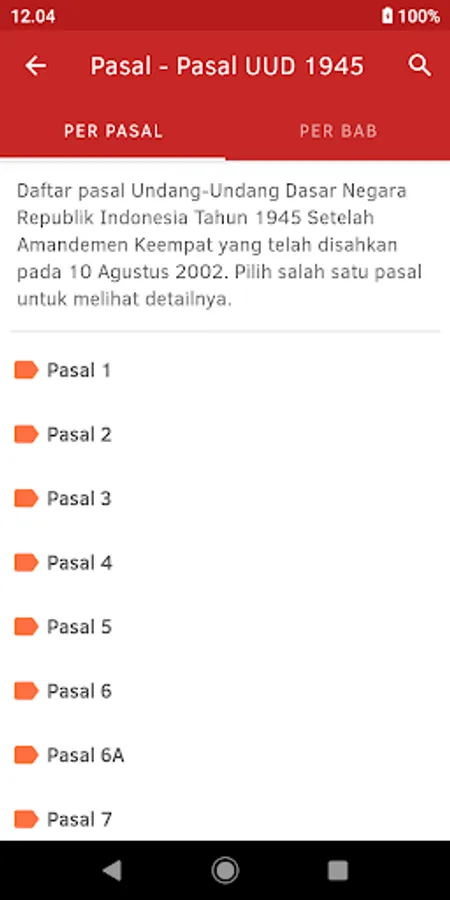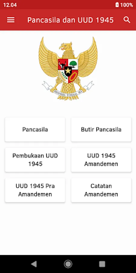 Aplikasi Pancasila dan UUD 1945 Amandemen yang berisi daftar 5 Sila Pancasila, butir-butir Pancasila, pengamalan butir pancasila, Pembukaan UUD 1945 dan Undang-Undang Dasar 1945 yg di kelompokkan berdasarkan Pasal dan juga berdasarkan Bab.