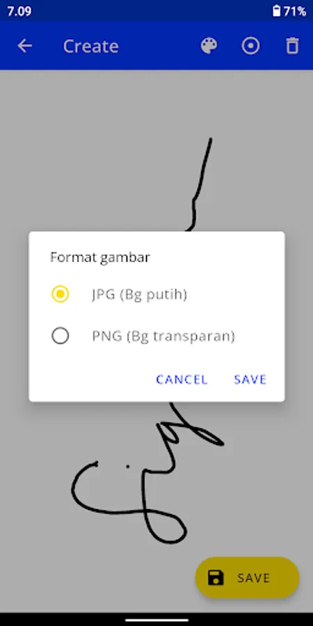 4. Buat tanda tangan dalam format JPG (latar belakang putih) atau PNG (latar belakang transparan).