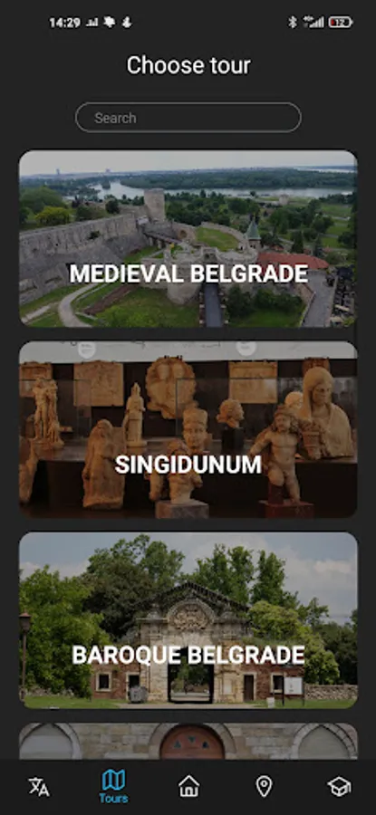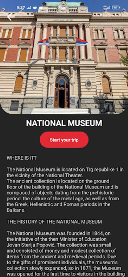 Our app offers themed tours covering historical eras and different communities that have left their mark on the city's heritage. This guide takes you through Belgrade in a simple way and provides reliable information about various phenomena in Belgrade. When you choose the offered tour, you will easily move from one place to another, and find out the most important information. You can also select individual objects and get information about their history. Our guide is unique, because it is part of the BELGRADE ADVENTURE school project, and therefore free and non-commercial