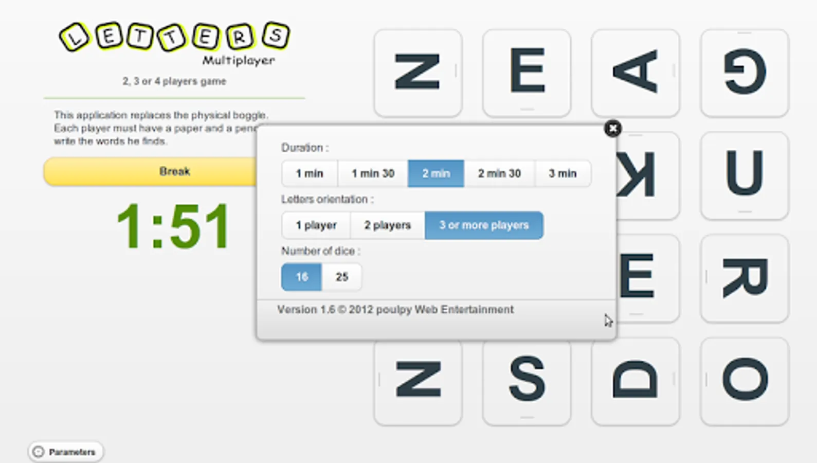 Letters Multiplayer replaces the Boggle board game.
