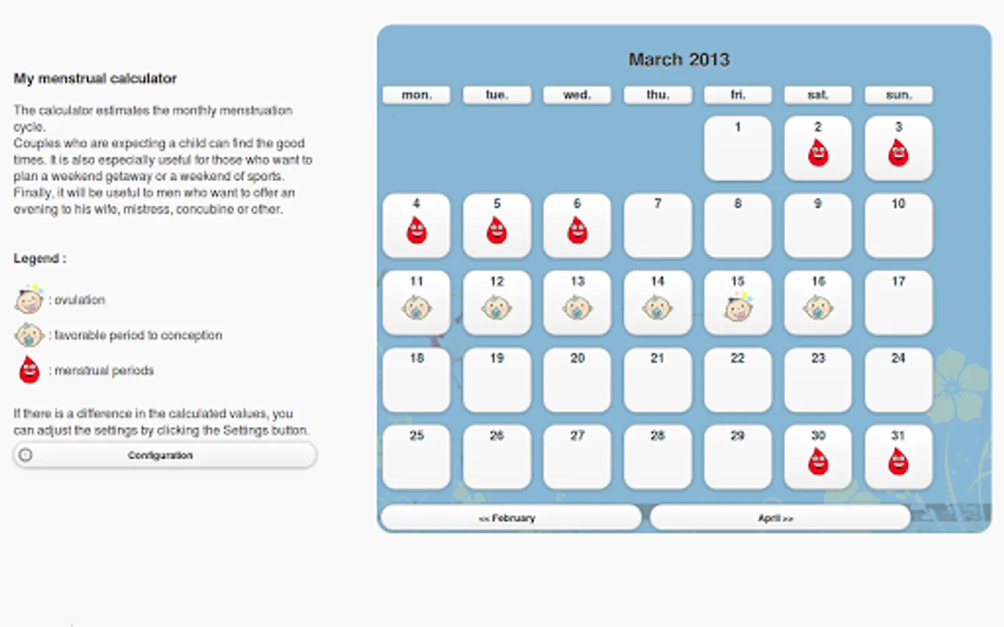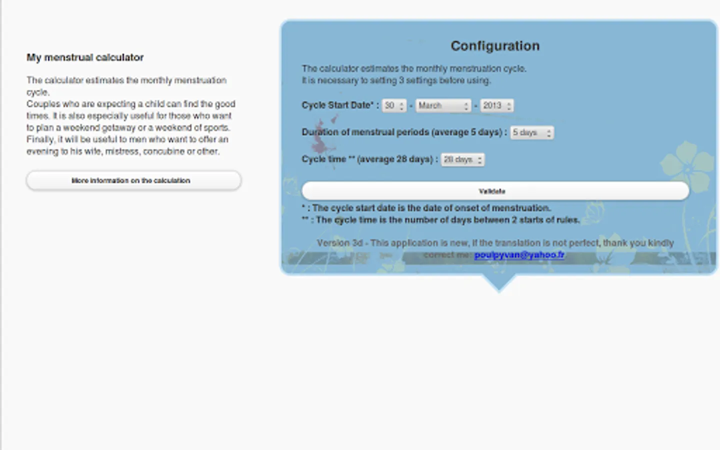 My menstrual calculator is simple and pleasant to use.