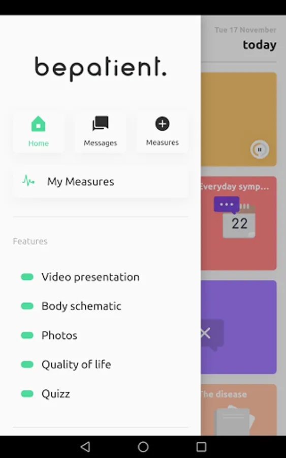 You can also share your experience with other patients in the same situation, manage your digital health records, access location-based online services, use innovative connected devices (scales, blood pressures, oximeters, health patches, soles, rapid home tests...) integrated into the bepatient platform, participate in clinical studies and instantly share your data with your healthcare professionals and caregivers.