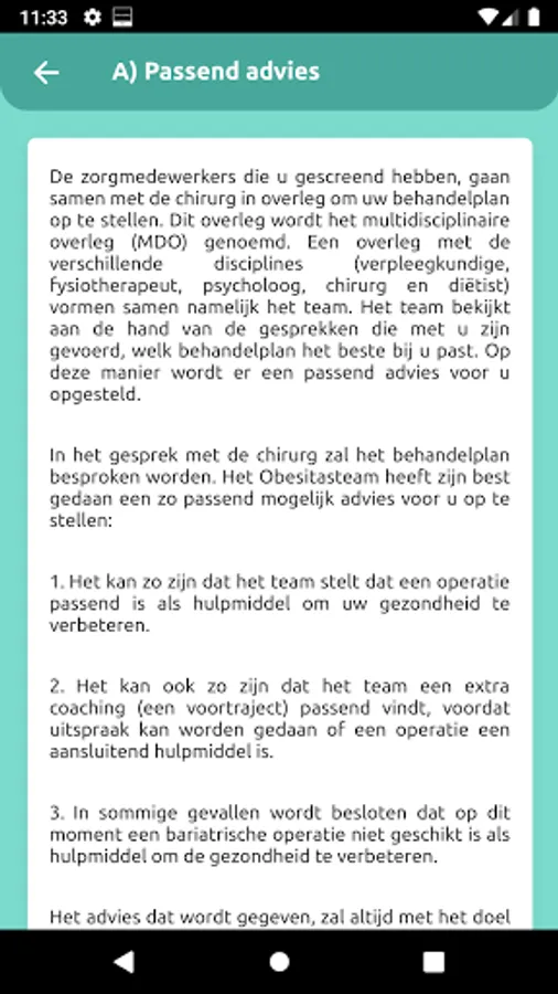 Obese patients undergoing gastric bypass surgery are encouraged to make a lifelong lifestyle change. For example, exercise and healthy nutrition are extremely important in this new life. There is plenty of information about this healthy lifestyle in the app.