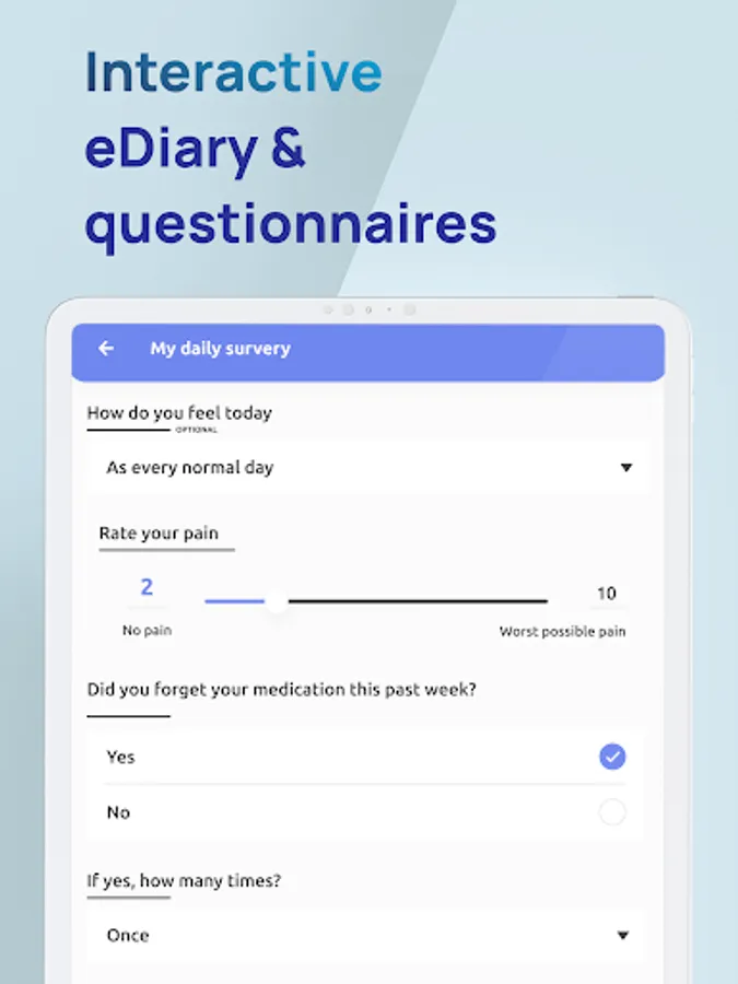 Built on a highly secure, cloud-based SaaS platform, b.research Patient Access solves many of the long standing challenges in healthcare: cost, time and access to clinical trials. Patient Reported Outcome reduces timelines, improves data quality and oversight. ePRO is part of the b.research unified platform, which includes eCRF, eCOA and Decentralized Clinical Trials solutions. By using your favorite web browser, b.research suite allows you to create your own questionnaires and easily make them available to your patients.