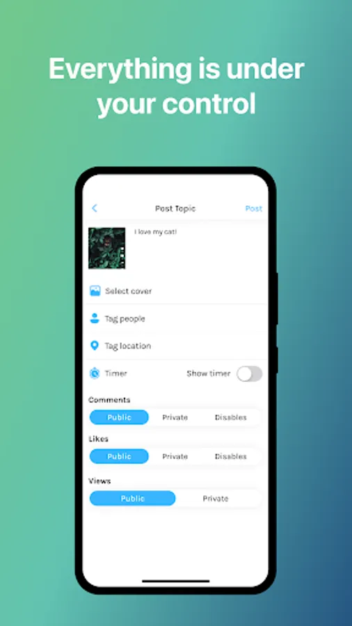 • Share your everyday life by adding photos and videos to your story that disappear whenever you choose with our new timer feature!
