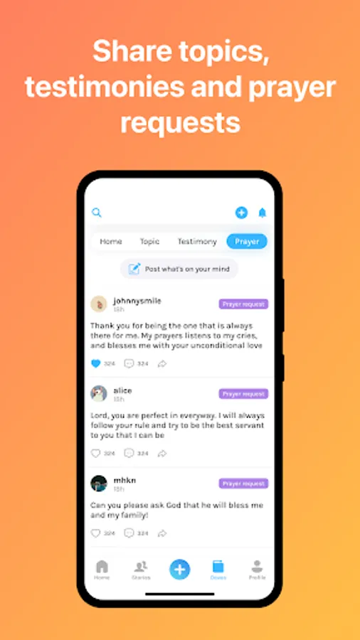 • In the prayer request section, post a prayer so that people all over the world can join to pray for you in faith!