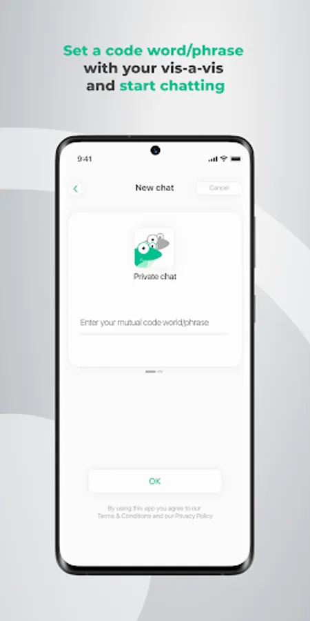 - Come up with code word, share it with your vis-a-vis, sign up to your private chat.