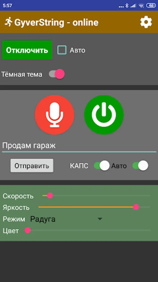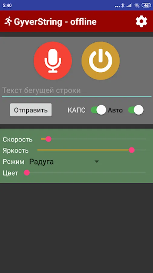 The application allows you to send text to display a running line on a matrix of address LEDs connected to a smartphone via Bluetooth. See the project description on the website https://alexgyver.ru/GyverString/. Opportunities: