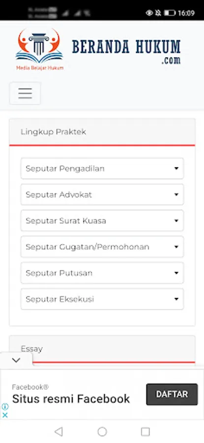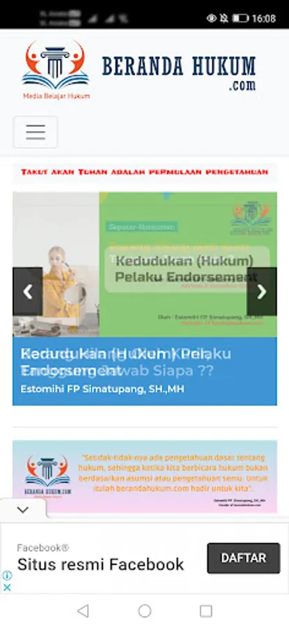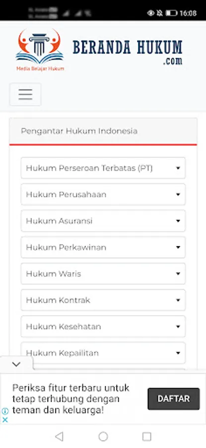 The Home Law application is a forum in the form of websites and applications that are managed as a means to study law, add legal insight and share legal knowledge.