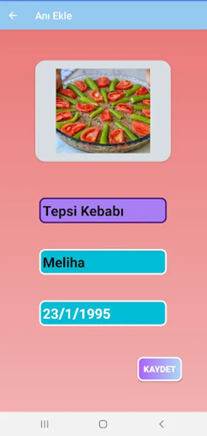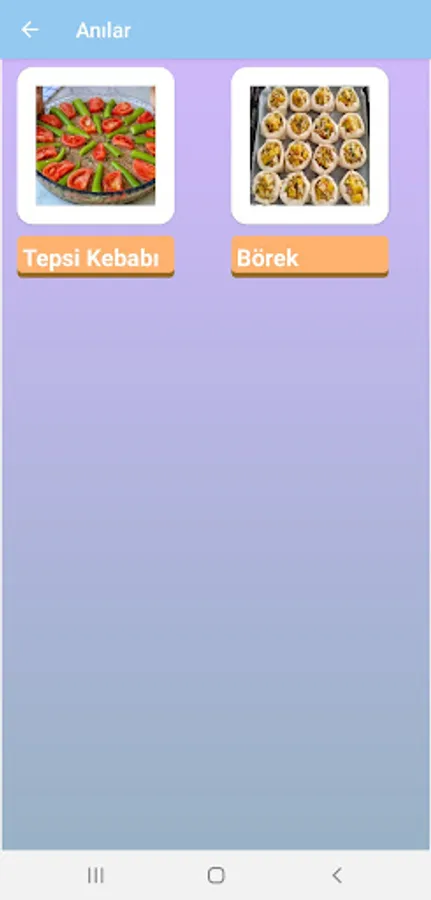 You can cook delicious dishes by looking at the recipes on the main page. When you want to keep the food you cook as a memory, you can fill in the boxes on the add memories page from the menu and keep your memories, and you can see what you have saved from the menu on the memories page.