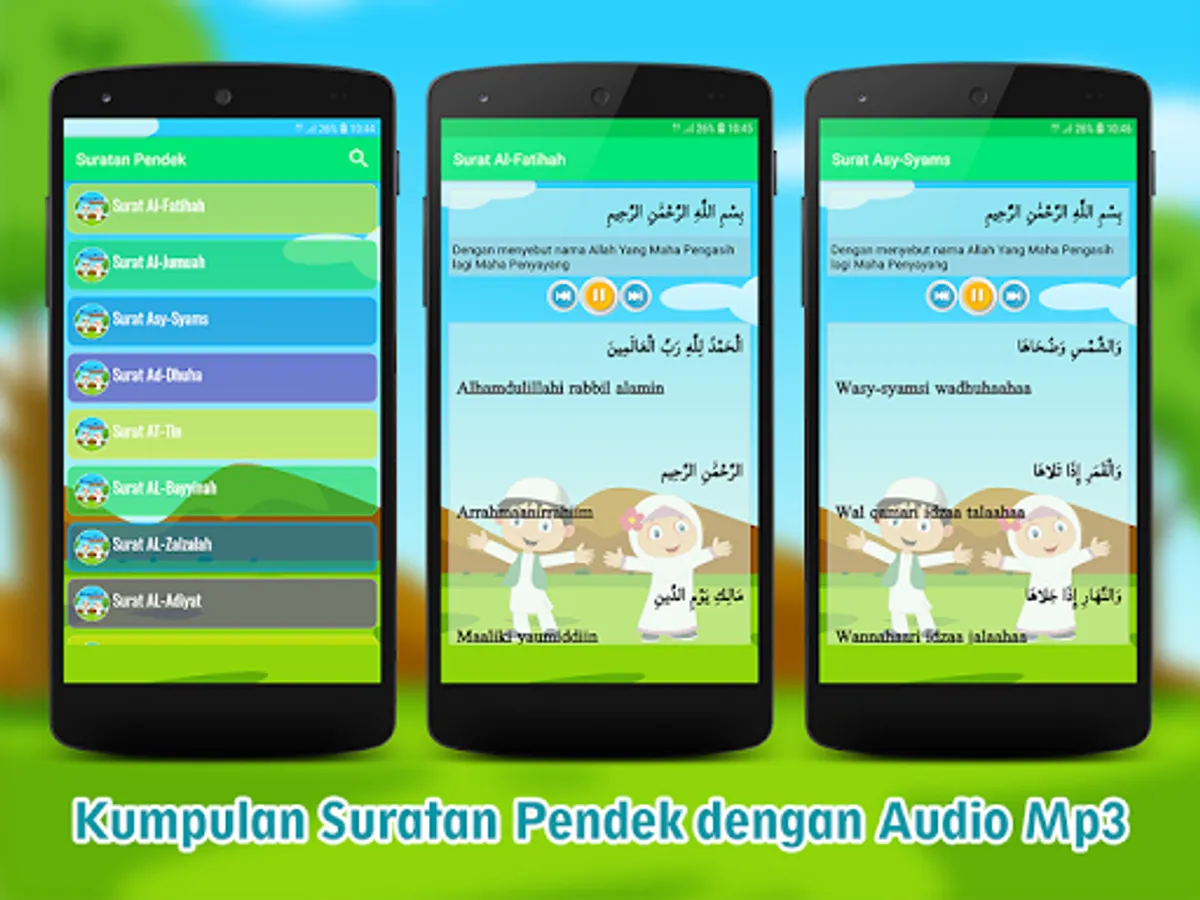 Surah Al-Fatihah, Surah Al-Jumuah, Surah Asy-Syams, Surah Ad-Dhuha, Surah AT-Tin, Surah AL-Bayyinah, Surah AL-Zalzalah, Surah AL-Adiyat, Surah AT-Takaatsur, Surah AL-Ashr, AL-Humazah Letter, AL-Fiil Letter, AL-Quraisy Letter, AL-Maa'un Letter, AL-Kautsar Letter, AL-Kafirun Letter, AL-Qadar Letter, Al-Insyirah Letter, AL-Ikhlas Letter, AL- Falaq, Surah An-Naas