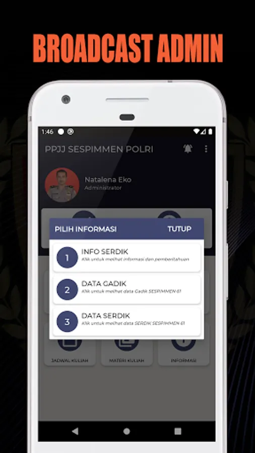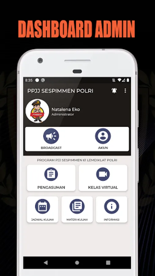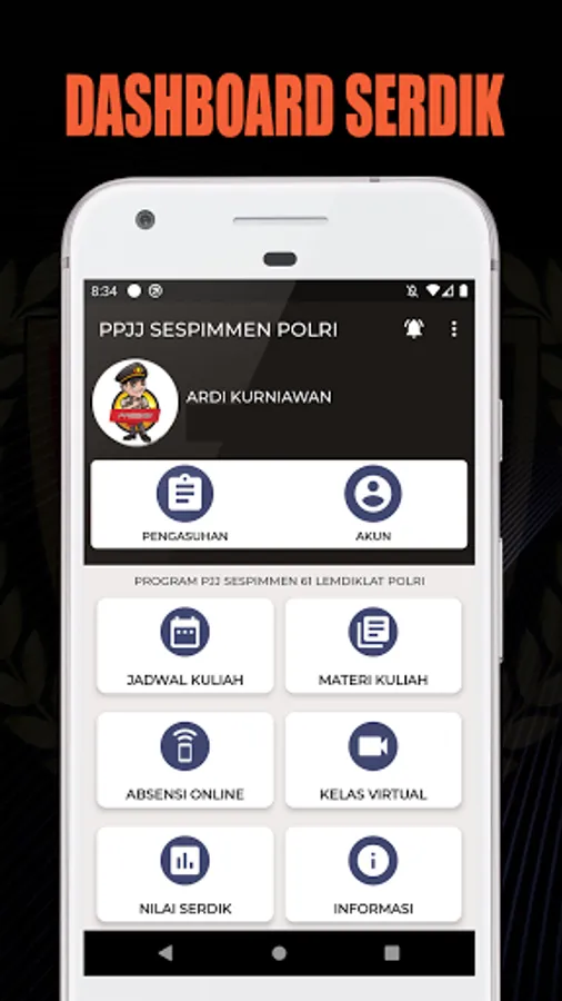 The PPJJ SESPIMMEN 61 POLRI application is an application that is used for the educational process of POLRI members using the online distance learning method. This application is designed to make the learning process easier, such as viewing schedule information, materials and being able to send active classes via a smartphone.