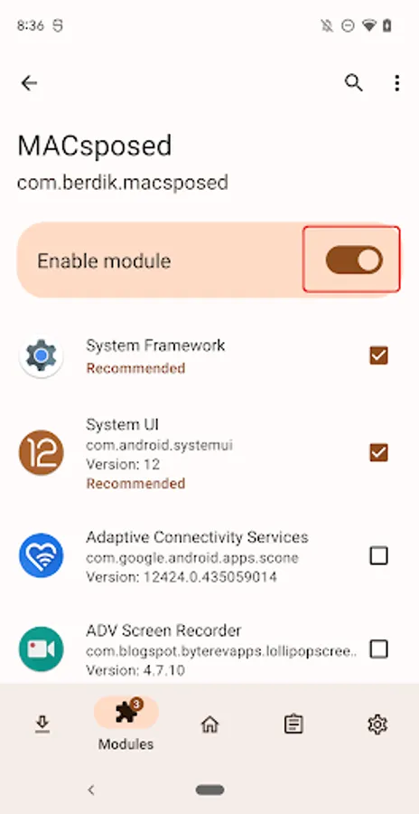 ⚠️ WARNING: MACsposed is intended for rooted devices running Android 12 or 13 and requires Xposed. The recommended Xposed variant to use is LSPosed. Other Xposed variants may work, but have not been tested. Additionally, this module cannot be guaranteed to work on all devices. In the worst case, it can cause a bootloop. Use at your own risk.