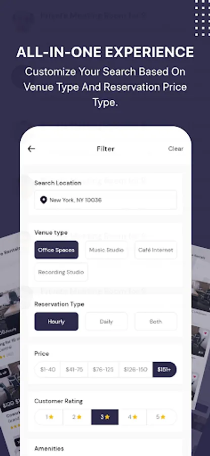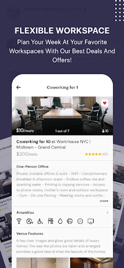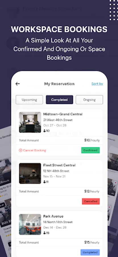 With the flexibility to choose the booking slots (Hourly / Custom), you may browse and reserve available places you like.