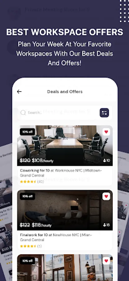 Customers can view the latest deals on office rentals and place their requests for booking.