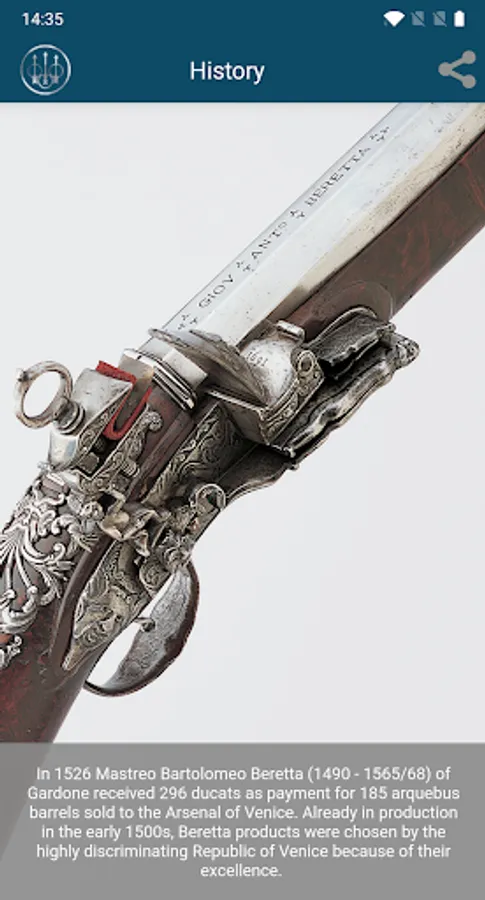 Weapons Factory Pietro Beretta S.p.A. is an Italian company born from the dream and capability of a renaissance craftsman. Its name has earned international status for its high-tech content, performance and for the Italian style that distinguishes its products. Passed down through 15 generations of the Beretta family, the company was already active in Gardone Valtrompia in the 1400s and its work has been documented since 1526.