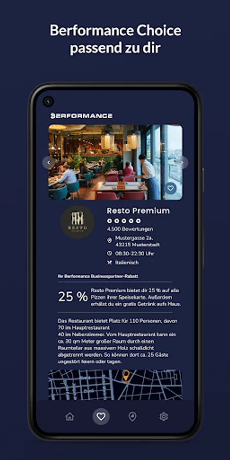 As our friend, you can use this app to secure all the advantages and see the offers from our business partners directly, whether online or in your area with one of our partners. Here you can expect exclusive discounts from selected Berformance partners, it doesn't matter whether you want to pay with euros or with cryptocurrencies, because our business partners give you the opportunity to immerse yourself in the digital world and use this world with all its advantages. The practical thing is, no matter where you are, you can use our app to filter for the best deal or, thanks to the route planning software, navigate directly to your best discounts around the corner. It's really fun, and as you know, "Friendship begins with money!" - Let's get started!