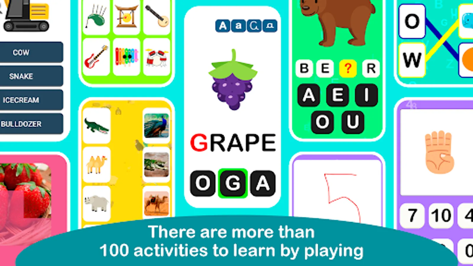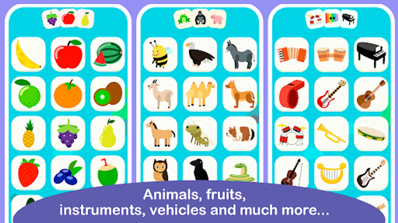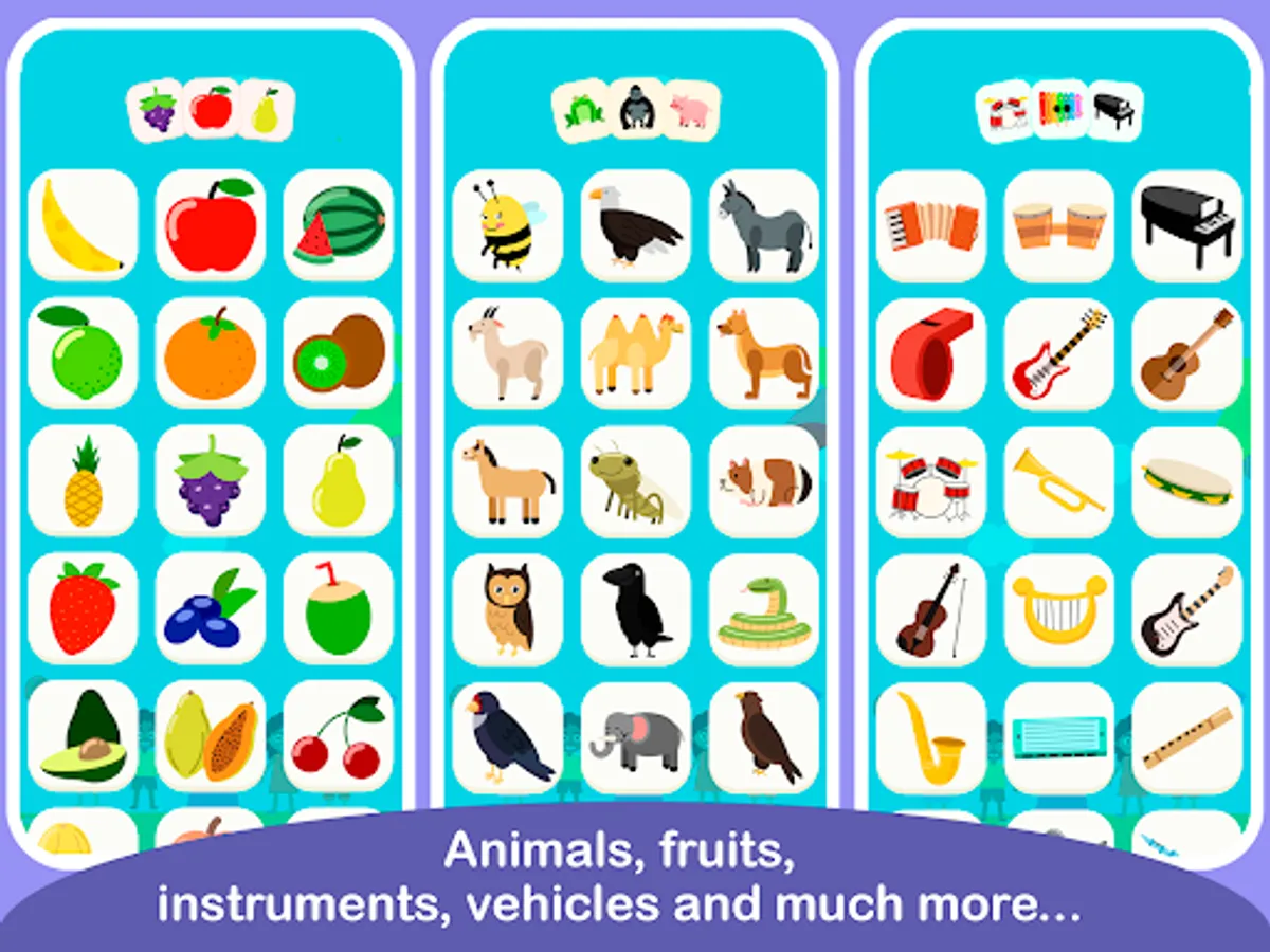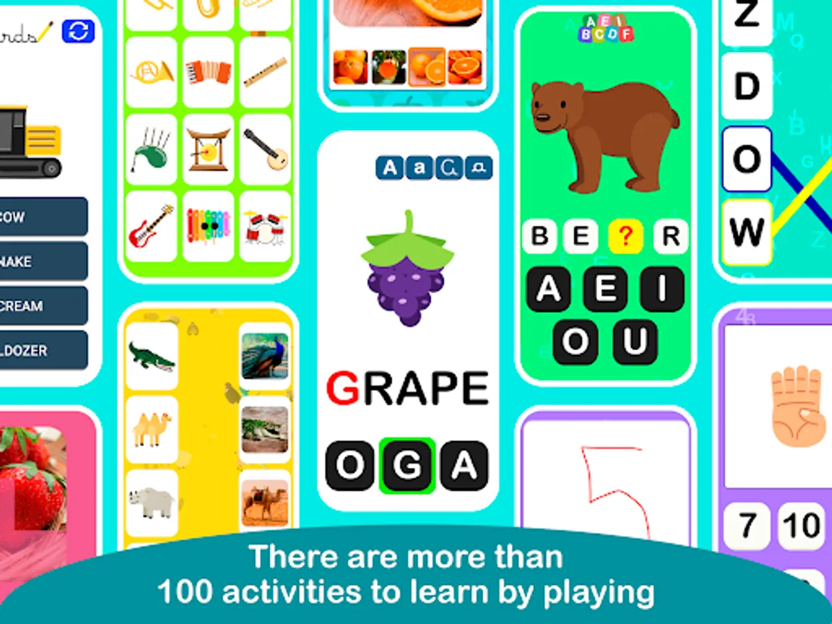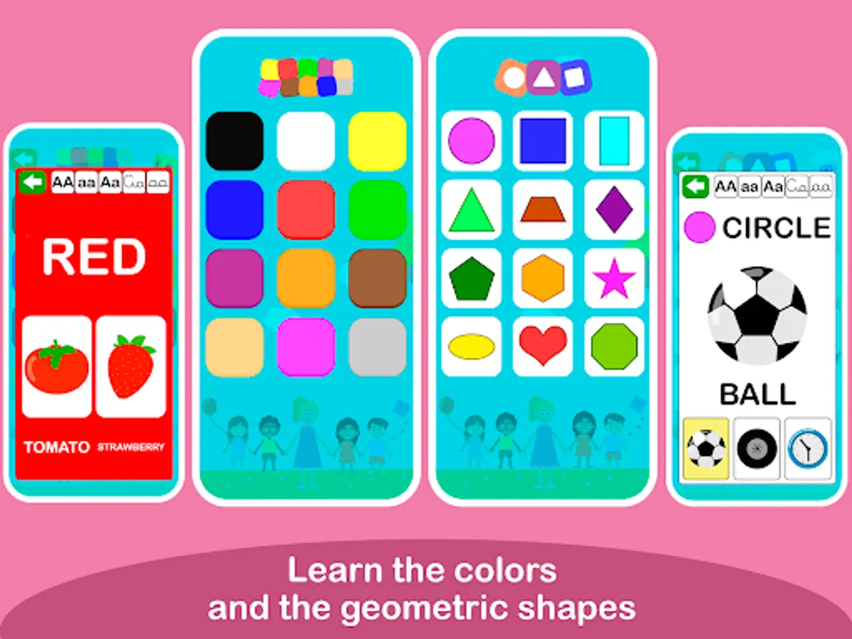 In our application your child learns the alphabet, vowels and consonants, syllables, numbers, sign language, addition and subtraction, geometric shapes, colors, opposites, animals, fruits, musical instruments, means of transport, more than 200 words and much more !