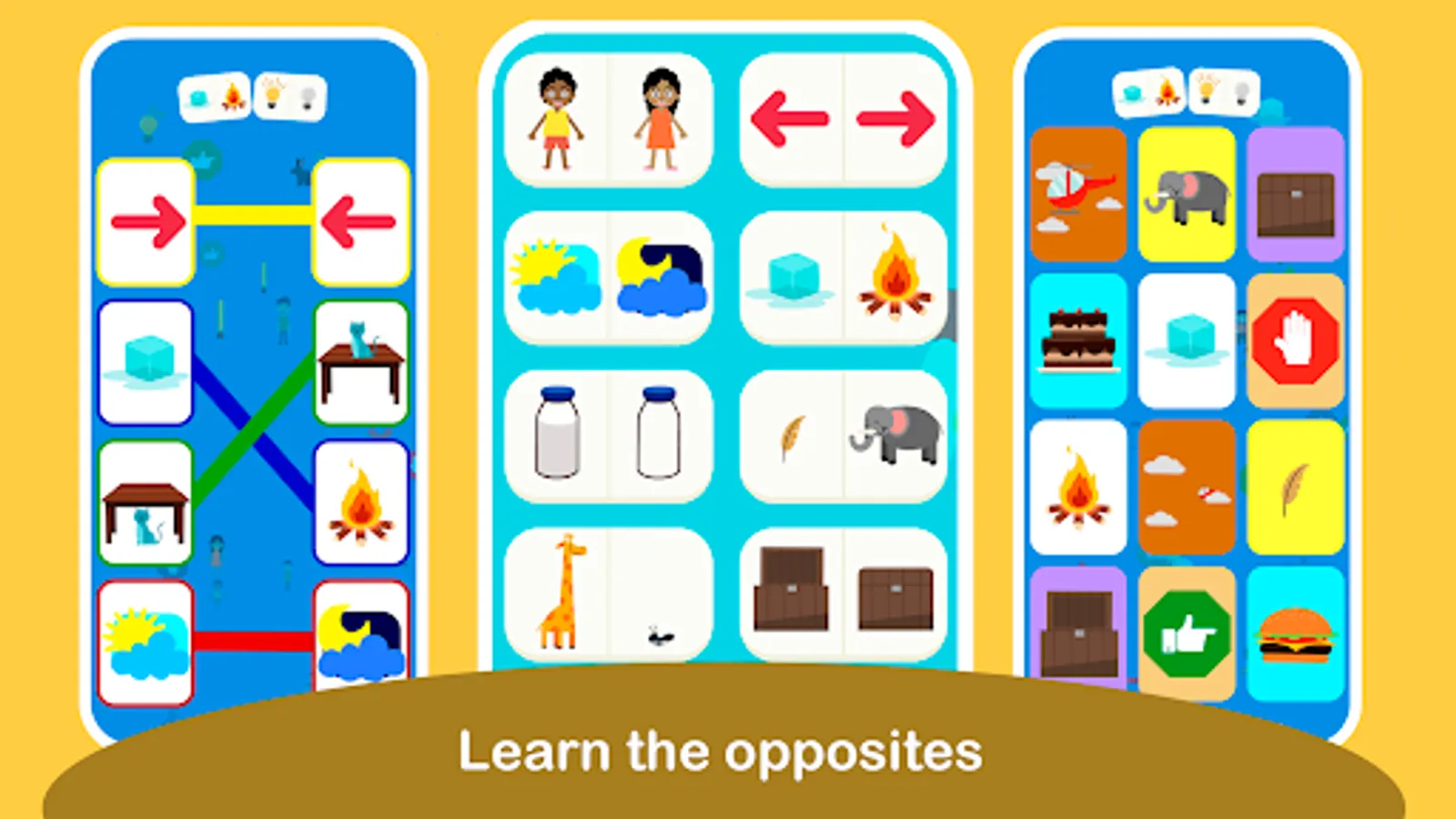 Activities to connect the opposite images, identify which is the opposite of each word and form pairs of opposites.