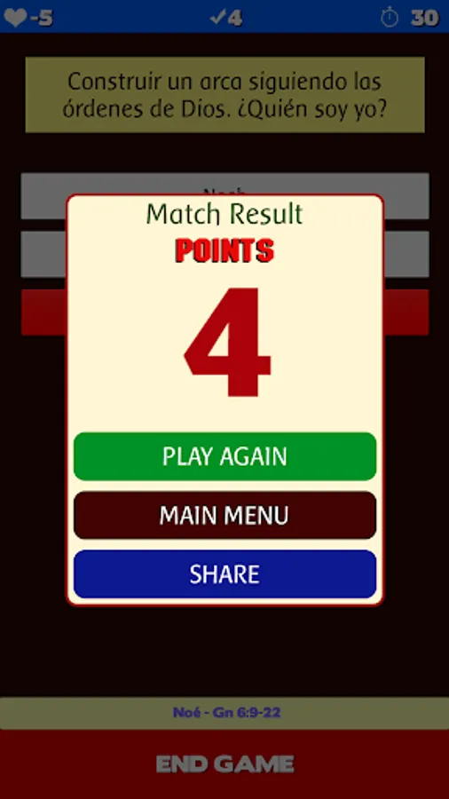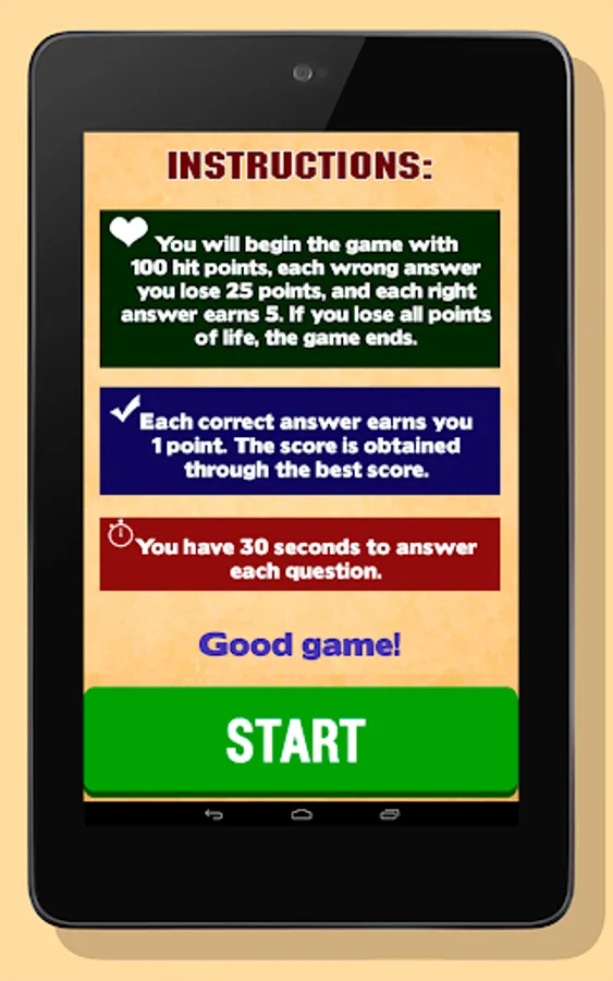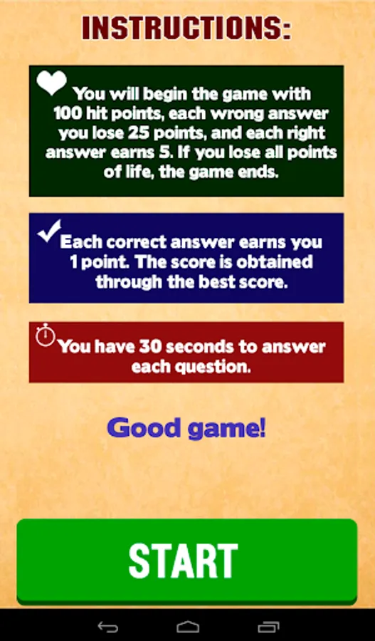 You will begin the game with 100 hit points, each wrong answer you lose 25 points, and each right answer earns 5. If you lose all life points, the game ends.