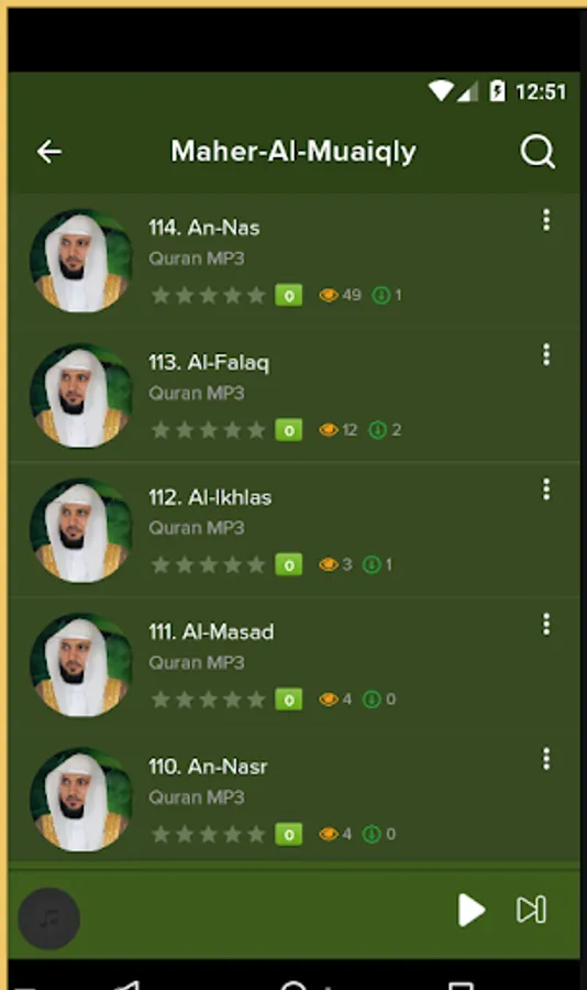 The App have its own audio player and you stream Sheikh Maher Al Muaiqly full quran audio offline and online.