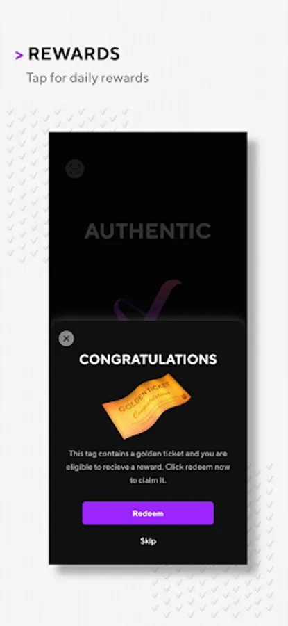 Our goal is to give users a revolutionary new way of authenticating goods by simply holding their phone on the Smart Tag, allow users to hook into as much or as little information on their favorite products and to have a much deeper interaction and ownership - all powered by web3 via Ethereum and Polygon.