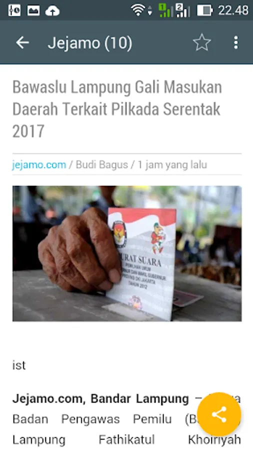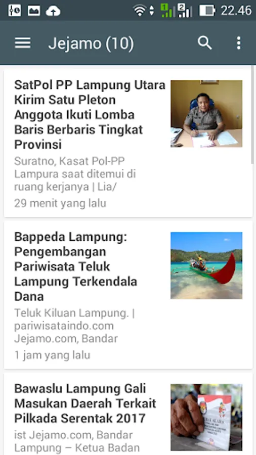 Application Latest news or news Lampung Lampung provides a fast and convenient way to read the latest news from Lampung and its surroundings. Can save time by reading various news sources anywhere in using only one application.