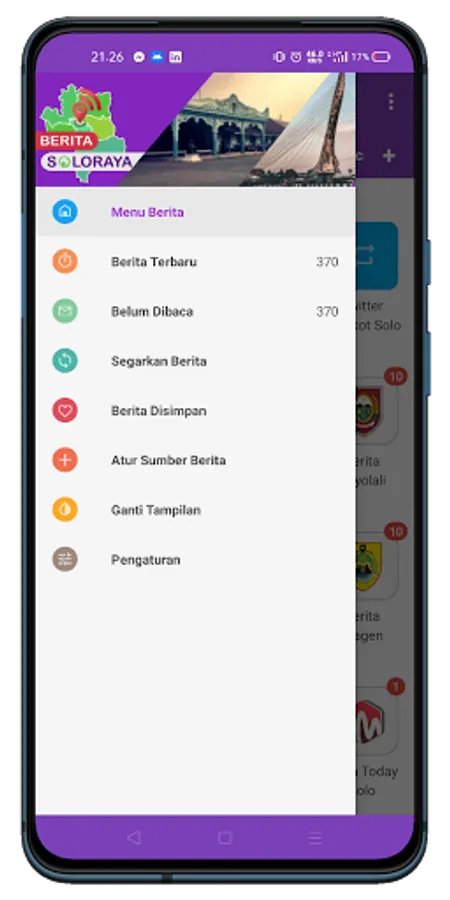 "Solo Raya News" is a news application that collects all the latest news from various reliable news sources and online media in the Surakarta Residency area or the Solo Raya region which includes Solo City, Sukoharjo Regency, Karanganyar Regency, Sragen Regency, Wonogiri Regency, Klaten Regency and Boyolali Regency. This application makes it easy for readers to get news from existing news sources according to need. Readers can adjust their own news sources ranging from managing the news source channel to set specific regional news districts of the city.
