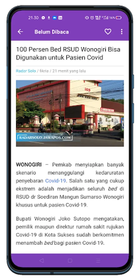 Not only that, the "Berita Solo Raya" application also has a notification feature that will automatically notify you when there is the latest news published.
