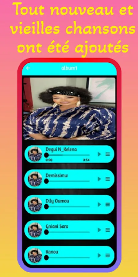 In this application you will find songs and new songs Oumou Sangare songs 2023 songs. Download the application for free on your smartphone for an unlimited time and enjoy the hits with good sound without the Internet.